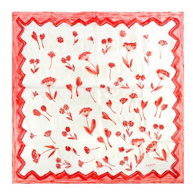 【LANVIN 浪凡】手繪風格花卉方型絲巾(紅色)