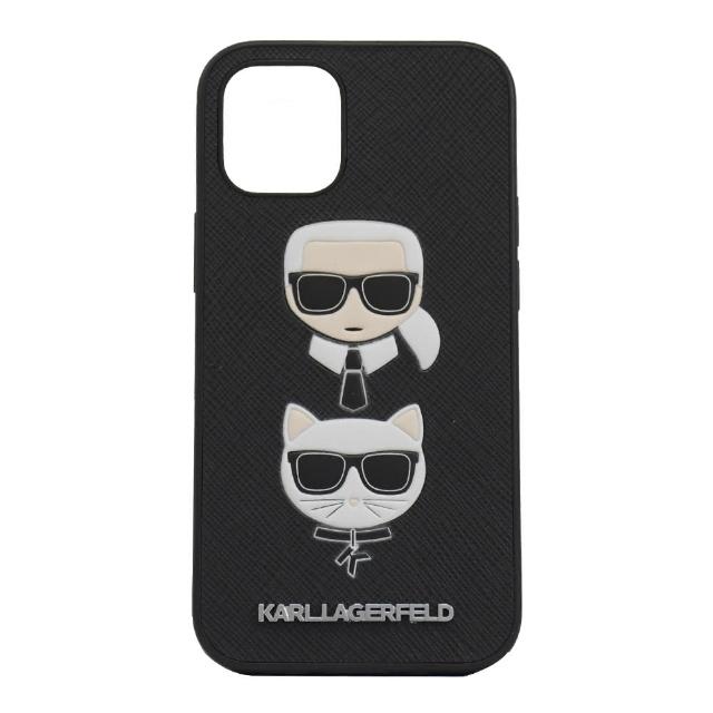 【KARL LAGERFELD 卡爾】老佛爺 Iphone12 立體公仔貓咪手機套(黑 5.4吋)