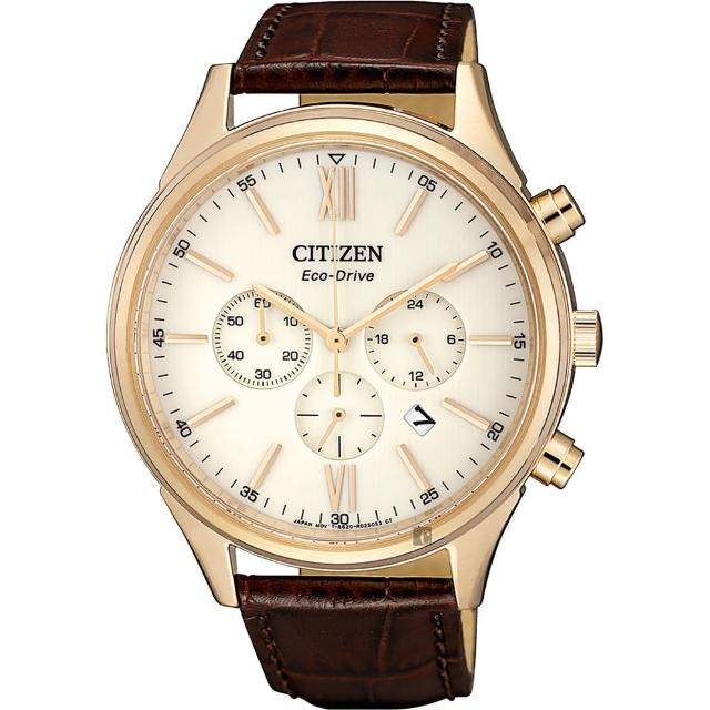 【CITIZEN 星辰】棕色皮革手錶(BF2023-01A)